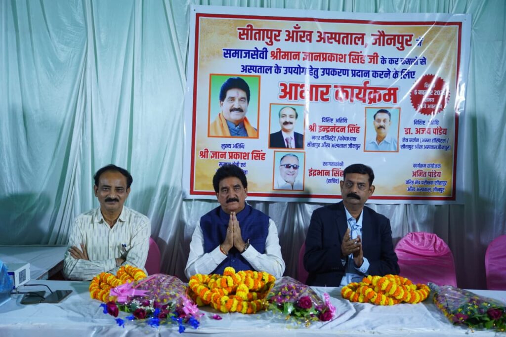 जौनपुर भाजपा के वरिष्ठ नेता ज्ञान प्रकाश सिंह का जिले के विकास के लिए हर क्षेत्र में सहयोग समर्पण भाव से जारी है। गुरुवार को उन्होंने जिले के सीतापुर अस्पताल में आंख के इलाज के लिए कीमती उपकरणों को मुहैया कराया है। अब मात्र 30 रुपए में दूर दराज से आये गरीबों और असहाय मरीजों को वह इलाज मिलेगा जो बड़े-बड़े अस्पतालों में मिलता है। यह संभव ज्ञान प्रकाश सिंह द्वारा मुहैया कराई गई कीमती मशीनों से ही संभव हो सका है। इन मशीनों की कीमत लगभग 15 लाख रुपए बताई जा रही है। हालांकि ज्ञान प्रकाश सिंह ने स्वास्थ्य के क्षेत्र में कई सराहनीय कार्य किए हैं।