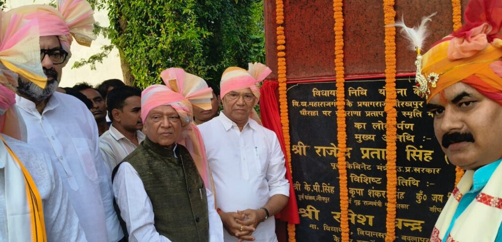 जौनपुर। बदलापुर विधानसभा अंतर्गत महराजगंज विकास खण्ड के प्रयागराज–शाहगंज मार्ग के चेती रामनगर में हिन्दू वीर सिरमौर महाराणा प्रताप प्रवेश द्वार का लोकार्पण रविवार को हुआ।कार्यक्रम में पहुँचे बतौर मुख्य अतिथि पूर्व कैबिनेट मंत्री राजेन्द्र प्रताप सिंह मोती ने वैदिक मंत्रोच्चार के साथ लोकार्पण किया।आयोजक विधायक रमेश चंद्र मिश्रा ने सभी अतिथियों को साफा व तलवार देकर सम्मानित किया।आयोजित कार्यक्रम को सम्बोधित करते हुए पूर्व मंत्री मोती सिंह ने कहा कि वीरता और वचन की एक अद्भुत मिसाल का नाम महाराणा प्रताप है। कार्यक्रम को संबोधित करते हुए बतौर अध्यक्ष कृपाशंकर सिंह ने कहा कि बदलापुर वीरों की धरती है वही बदलापुर के विधायक की तारीफ करते हुए कहा कि सबका साथ सबका विकास भाजपा के नीति को आगे बढ़ाते है और चारों तरफ विकास की गंगा बहा रहे है और यह प्रवेश द्वार उसका एक बड़ा उदाहरण है बदलापुर के विधायक का कार्यालय इतना लंबा हो की एक नजरी बने वही पूर्व प्रत्याशी अजय दुबे अज्जू की भी तारीफ करते हुए कहा कि अज्जू भी तैयार है कि जनता हमे कब मौका दें और मुंगराबादशाहपुर की तस्वीर बदलने का काम करें,यही नहीं जौनपुर जिले की नौ की नौ विधानसभा में आने वाले 2027 में भाजपा और उनके सहयोगी दल जीत का परचम लहराए ऐसी कामना है।