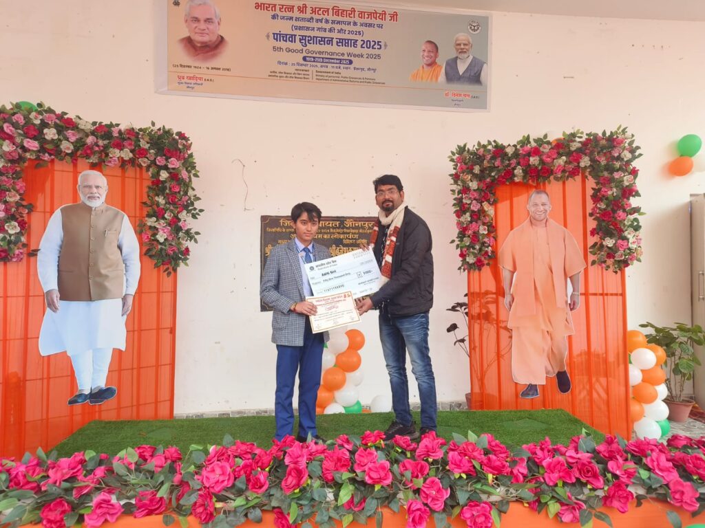 जौनपुर। ‘सेवा पखवाड़ा’ के अंतर्गत आयोजित जनपद स्तरीय चित्रकला प्रतियोगिता में उमानाथ सिंह हायर सेकेंडरी स्कूल के शिक्षक और छात्रा ने अपनी कला का लोहा मनवाते हुए बड़ी सफलता हासिल की है।आज ‘सुशासन दिवस’ के शुभ अवसर पर जनपद के प्रेक्षागृह में आयोजित एक भव्य समारोह में विजेताओं को सम्मानित किया गया। प्रतियोगिता के सामान्य वर्ग में विद्यालय के कला शिक्षक नवीन कुमार विश्वकर्मा ने द्वितीय स्थान प्राप्त किया, जिन्हें पुरस्कार स्वरूप ₹21,000 का चेक प्रदान किया गया। वहीं, कक्षा 9 से 12 (जूनियर वर्ग) में विद्यालय की मेधावी छात्रा अदिति गिरी ने प्रथम स्थान हासिल कर ₹51,000 का चेक पुरस्कार स्वरूप अपने नाम किया।