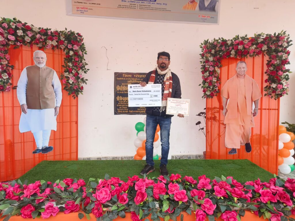 माननीय अतिथियों ने बढ़ाया उत्साह: कार्यक्रम के मुख्य अतिथि उत्तर प्रदेश सरकार के खेल एवं युवा कल्याण मंत्री माननीय श्री गिरीश चन्द्र यादव, विशिष्ट अतिथि सांसद माननीया सीमा द्विवेदी एवं जिलाधिकारी डॉ. दिनेश चंद्र सिंह ने विजेताओं को प्रमाण पत्र और पुरस्कार राशि का चेक प्रदान किया। अतिथियों ने नवीन कुमार विश्वकर्मा और अदिति गिरी की कलात्मक प्रतिभा की मुक्तकंठ से प्रशंसा की और उनके उज्जवल भविष्य की कामना की।