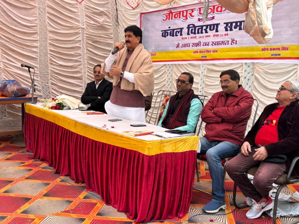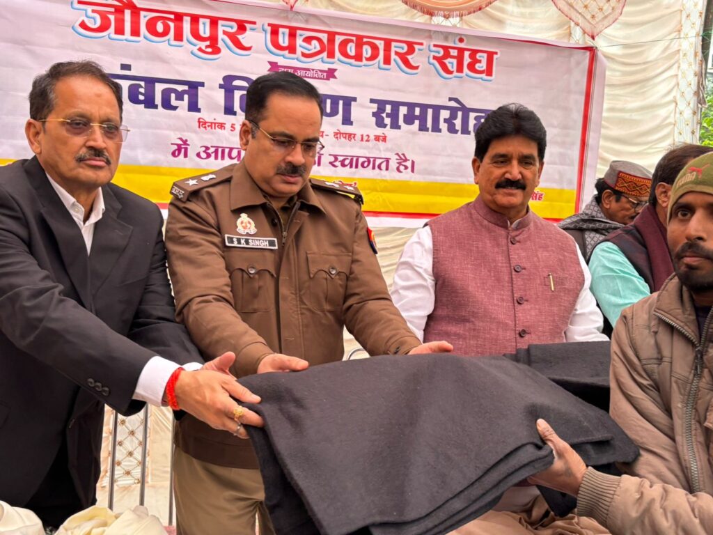 उन्होंने समाजसेवी ज्ञानप्रकाश सिंह की सराहना करते हुए कहाकि वे सामाजिक कार्यों में हर्शवर्धन की भांति मुक्तहस्त से धन का दान करते हैं। दूसरे विशिश्ट अतिथि प्रदीप सिंह सफायर ने जौनपुर पत्रकार संघ के सामाजिक कार्यां की सराहना करते हुए यथा संभव सहयोग करने का संकल्प लिया। जौनपुर पत्रकार संघ के संरक्षक ओमप्रकाश सिंह ने कहाकि गरीबों को परमात्मा का स्वरूप समझकर उनकी सहायता करनी चाहिये। समाजसेवा में व्यय किया गया धन ही उसका सदुपयोग है अन्यथा वह नश्ट हो जाता है। कार्यक्रम के आरंभ में अतिथियों द्वारा दीप प्रज्जवलन किया गया। आगन्तुकों का अभिवादन जौनपुर जौनपुर पत्रकार संघ के अध्यक्ष शशिमोहन सिंह क्षेम तथा संचालन महामंत्री मधुकर तिवारी ने किया। कार्यक्रम में 200 कंबल वितरित किया गया। उक्त अवसर पर रामदयाल द्विवेदी, लोलारख दूबे, भारतेन्दु मिश्र, वीरेन्द्र मिश्र विराट, रामश्रृंगार शुक्ल गदेला, अर्जुन शर्मा, राधा कृश्ण शर्मा, अनिल पांडेय, राजेश मौर्य, विनोद विश्वकर्मा, रूपा गुप्ता सभासद, प्रकाशचन्द्र शुक्ल, राजन पाल आदि मौजूद रहे।
